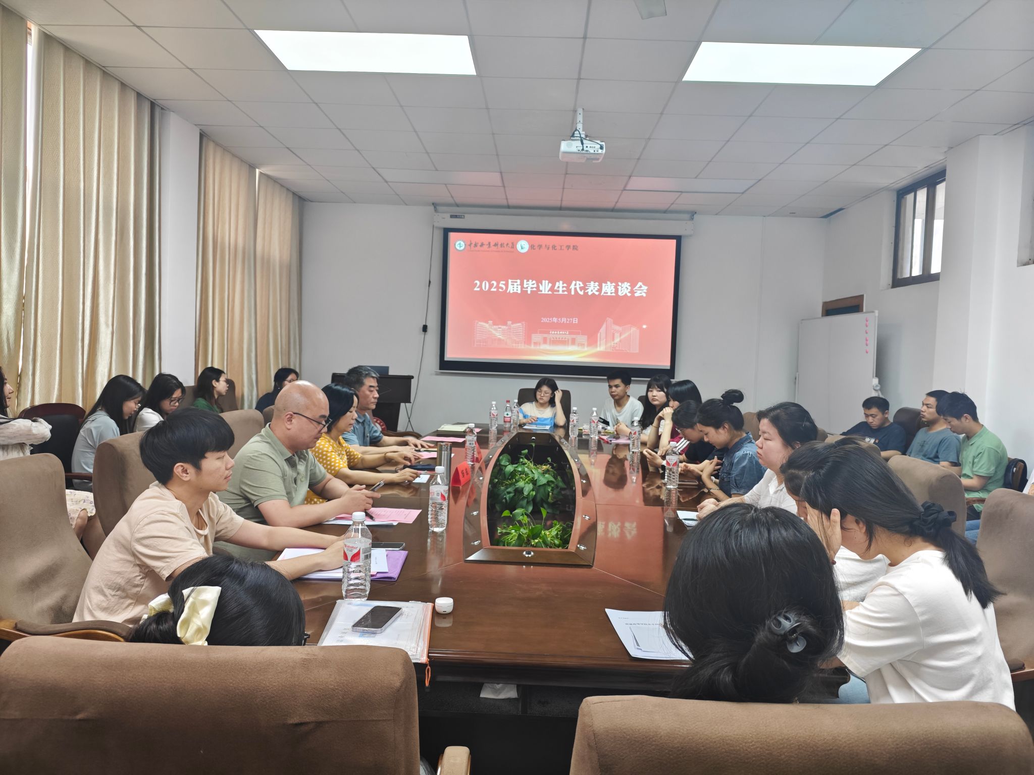 倾听临别心声,传递学院温暖,助推学校发展。5月27日下午,我院在经世楼508会议室召开2025届毕业生座谈会。学院副院长杨国恩、党委副书记邹敏、全体辅导员及毕业生代表30余人参与此次座谈会。座谈会由学院党委副书记邹敏主持。
