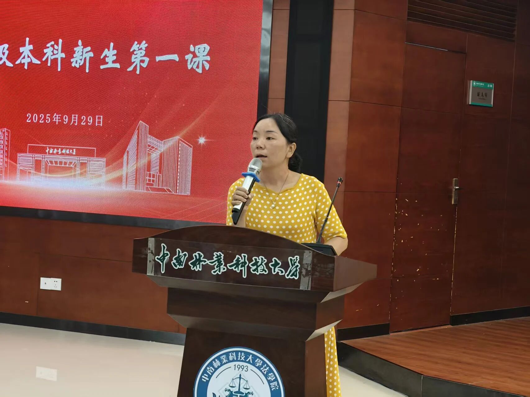 9月29日晚,我院2025级本科新生第一课在博文楼模拟法庭举行。学院副院长杨国恩、党委副书记邹敏出席,新生班主任代表喻胜飞、罗洁、魏元峰,全体行政老师及辅导员与242名本科新生参加。活动由邹敏主持。在庄严的国歌声中,新生第一课正式拉开序幕。