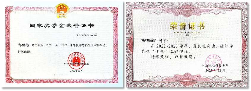 邹瑞颖思想表现突出,专业知识过硬,综合素质全面,彰显了新时代大学生有理想、敢担当、能吃苦、肯奋斗的优秀品质,用行动诠释了最美大学生的模样。在未来的学习、工作中,邹瑞颖也将勇担使命、砥砺前行、不负青春、不负韶华,为国家振兴、民族复兴书写属于她的青春华章。