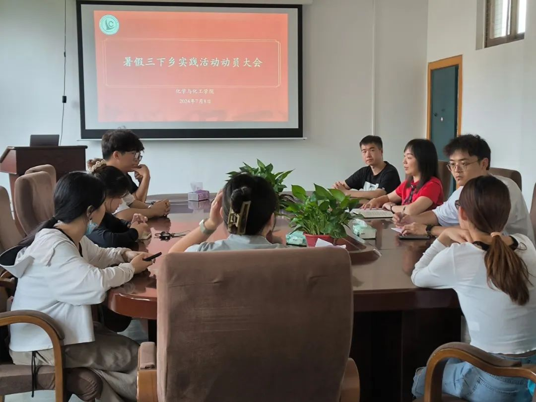 为全面部署和动员即将开展的暑期“三下乡”社会实践活动,激励广大青年积极投身社会实践,化学与化工学院暑期“三下乡”社会实践活动动员大会于7月8日在经世楼508会议室正式召开。学院党委副书记陈慧慧、团委书记张文芳及全体三下乡团队成员参加本次大会。会议由张文芳主持。