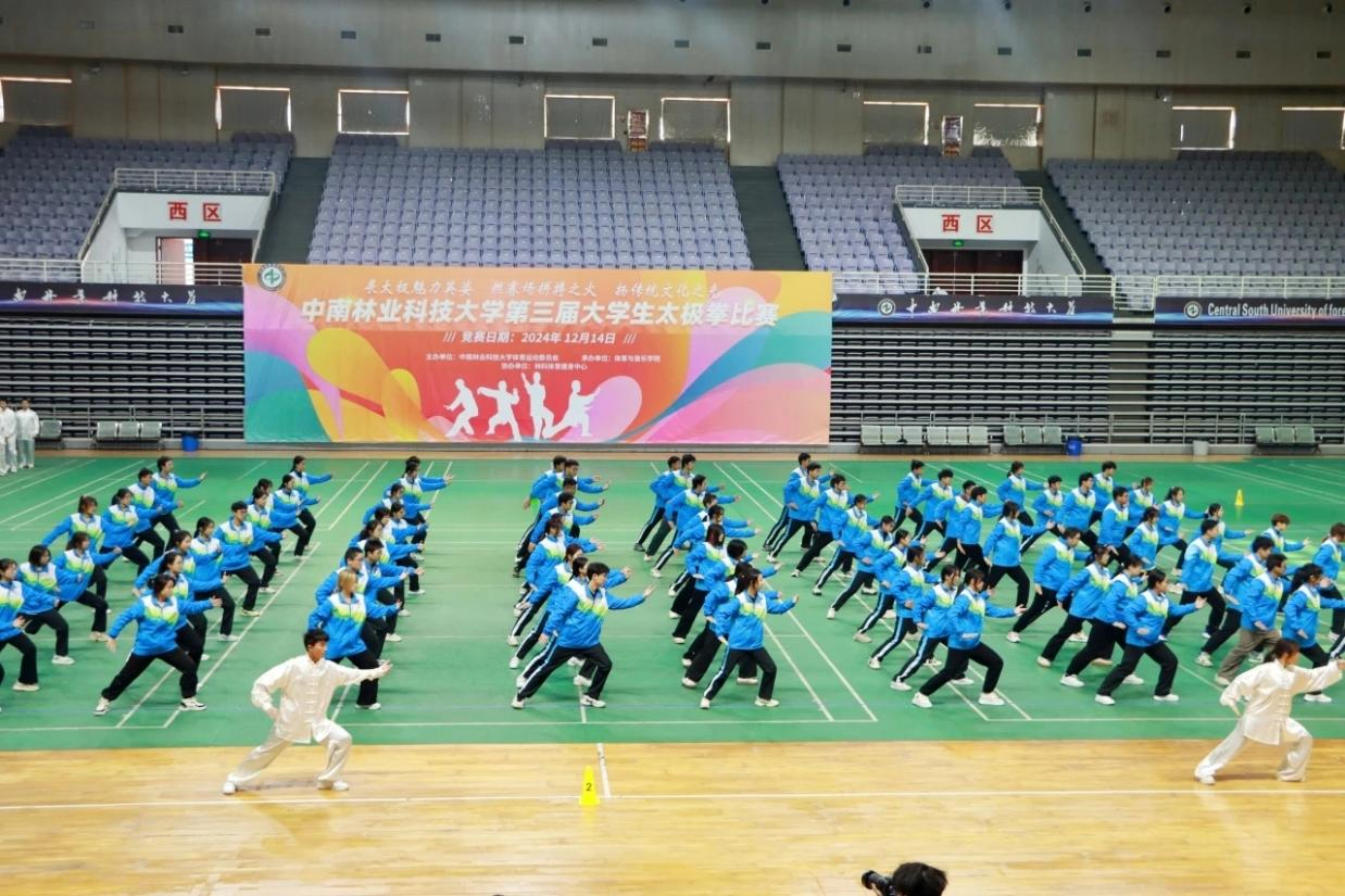 学院代表队身着整齐的蓝色院服,步伐坚定有力,口号响亮,展现出必胜的信念与斗志。随着古韵悠扬的音乐响起,选手们身姿沉稳,动作如行云流水,完美诠释了太极拳刚柔并济的魅力。野马分鬃动作舒展洒脱,白鹤亮翅轻盈飘逸,将观众带入太极文化的深邃意境。