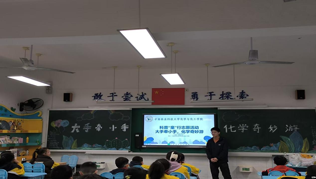 3月14日,中南林业科技大学化学与化工学院组织大学生志愿者前往新路小学开展一场别具特色的科普“童”行志愿活动。该活动旨在通过科普课堂从小激发学生科学兴趣,同时为学院同学提供良好的志愿者服务平台,为大学生提供便利的社会实践途径。