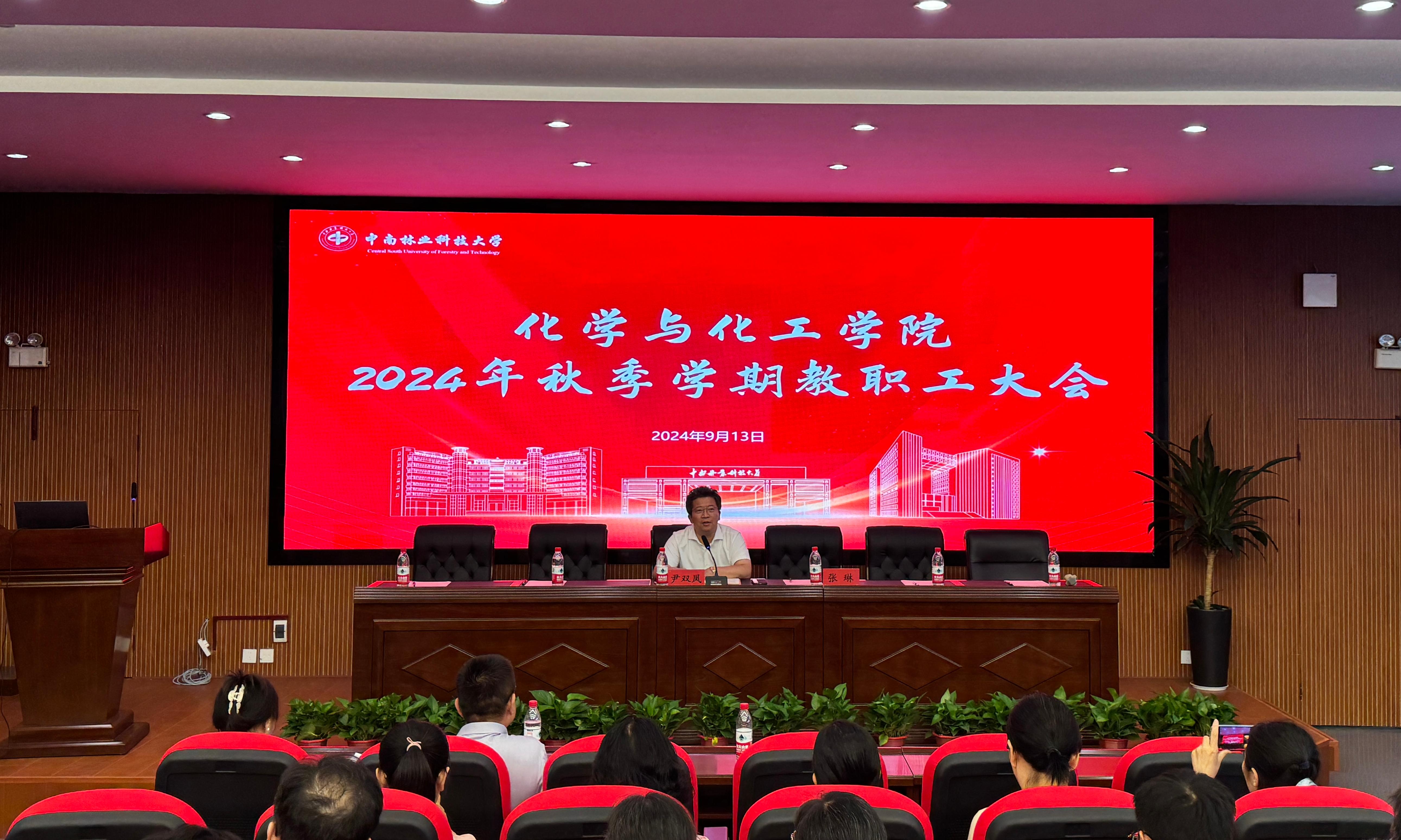 最后,尹双凤充分肯定了化工学院自建院以来取得的各项成绩,并表达对学院未来发展的殷切期望。他紧密结合党的二十届三中全会精神,高屋建瓴地为学院未来的发展指明了方向。他强调,要进一步深化教育教学改革,创新人才培养模式,提升教学质量与效果;强化科研创新能力,鼓励师生勇攀科技高峰,推动产学研深度融合;优化管理服务机制,提高管理效能和服务水平,营造更加良好的教学科研环境。他积极倡导并大力支持学院师生踊跃参与课题、基金的申报工作,能报尽报;勉励师生积极参与各类竞赛,以赛促学,以学促赛。