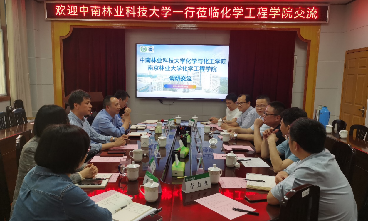 5月8日下午,学院党委书记吴海刚带队赴南京林业大学化学工程学院进行调研。重点了解了对方学院在学科发展、专业建设、师资队伍、科研能力、教育教学、研究生培养、产学研合作、工程教育认证等方面的情况和取得的成绩,为学院谋划未来学科发展和专业布局,推动学院高质量发展提供借鉴。副院长(主持工作)谢练武、副院长杨国恩、林产化工专业负责人旷春桃、化学工程与工艺专业负责人罗洁参与调研,南京林化工院党委书记姚建峰、院长黄超伯、副院长黄申林、副院长徐徐、副院长荆宇、林产化工系主任陈祖鹏、化学工程系主任李立成等陪同调研与考察。